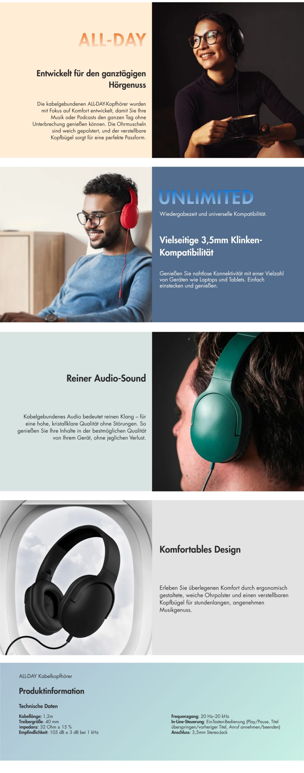 4 Bewertung für ALL-DAY Kabelkopfhörer