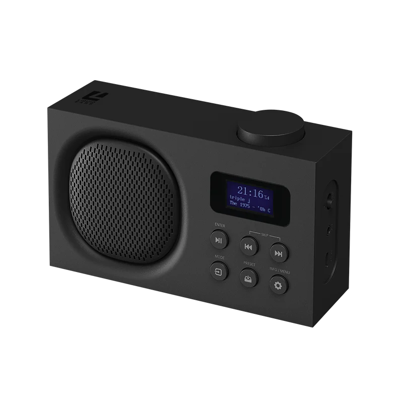 The classic FM radio has been now updated with DAB+, What’s DAB+ you ask? It’s Digital Audio Broadcasting which is now the new standard for high-quality radio. Not only does it provide exceptional sound quality, but it includes on-screen information. You can also store up to 40 Preset stations for your convenience. It also has dual alarms that you can wake up to either DAB+ / FM / Buzzer or can hit snooze. It can be powered with three AA batteries for portable listening and can also be powered via USB with the provided power adaptor and charge cable.