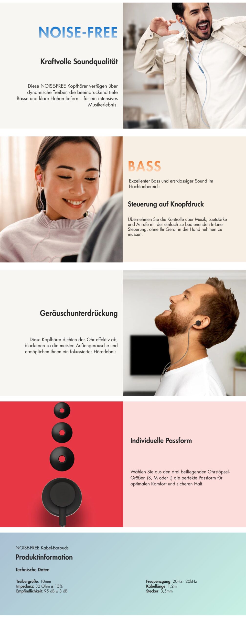 NOISE-FREE Kabel-Earbuds