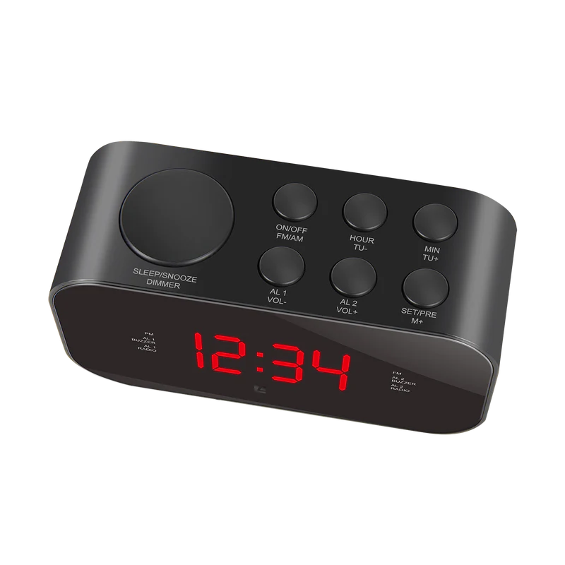 This classic FM/AM clock radio offers convenience and simple usability. With large buttons and dual alarm presets you can easily set your alarms and start your day with confidence. A digital clock display provides a precise and visible indication of time. The WAKE Dual Alarm Clock Radio is an ideal choice for early risers.